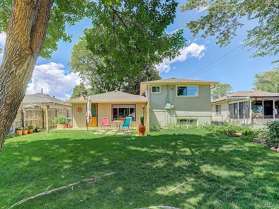 This North Denver Heights/Chaffee Park home built in 1948 is ready to move in. 5 blocks away from Beach Court Elementary School, 5 blocks from Zuni Park and 7 blocks from Chaffee Park/Sunnyside. Original red oak hardwood floors are under the carpet in dining room area and main floor bedroom. Same owners since 1980 have continually been updating. Easy access to I70. Plenty of parking on street in front of the house. And the old driveway in front can fit 2 cars. Beautiful back yard with 2 sheds and a great 10 x 20 garden. One shed has a dog run/chicken pen. The kitchen was remodeled in 2003 with new cabinets and granite countertops. Both baths were remodeled in 2016, and bathtub refinished in 2022. Years ago, the original garage was turned into the living room and a primary bedroom and 1/2 bath were added above, with a bedroom added into the basement. Most new windows in 2016. 3 new Mitsubishi split AC's in 2022. Boiler Heat new in 2014. New Hot Water Heater in 2023. New roof & gutters in 2017. Outside painted in 2021. Washer and Dryer included. Privacy fence on 2 sides. Enclosed back patio is a perfect bonus room with wood burning stove and is approximately 170 square feet which is not included in gross living space. Trash and Recycling picked up every Tuesday by City of Denver. Carpets being shampoed on Oct 2nd.