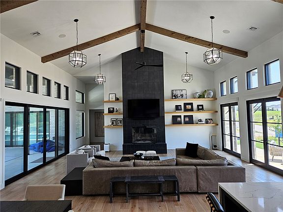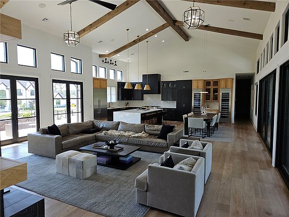 Gorgeous one level home in sought after Estates at Southgate in Rogers. Home features split floorplan, 4 bedrooms, game room with mini fridge and serving window to covered patio, 3 full baths, 2 half baths, 4 car garage, F5 tornado shelter inside glass walled office, automatic window shades, new AV, security system, sprinkler system, vaulted ceiling complete with wood beams in living area and master bedroom. Kitchen has a large island, 2 wine fridges, double oven, & large butlers pantry. Master bedroom features high ceilings, fireplace, coffee area with mini fridge, large walk in shower, separate tub, stackable W/D, his/her closets & water closets. The home is set up perfectly for entertaining with French doors opening to front patio where you can relax & watch sunset bedside outdoor fire pit, and sliding glass doors on back that lead to pool area, multiple sitting areas, complete with outdoor kitchen, 2nd fire pit, eating areas, & large yard with separate fenced in area. To much more to list, this wont last long.