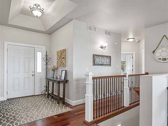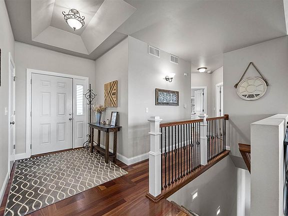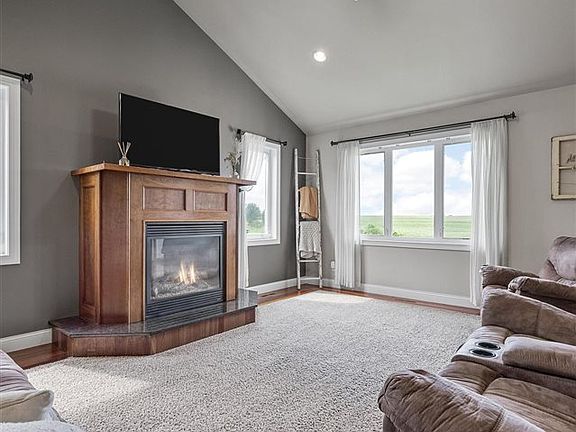 You will appreciate the custom details throughout this five-bedroom walk-out ranch home on Cedar Rapids’ southwest side! Stone- and brick-front home with Brazilian cherry hardwood floors throughout much of the main level, including along the perimeter of the great room. Custom kitchen wrapped in soft-close cherry cabinets, huge central island/breakfast bar capped with dark granite, and vaulted ceilings overhead. Spacious dining area flows into the great room with gas fireplace as the focal point of the space. The sunroom and an elevated maintenance-free deck off the dining area offer nice views of the oversized yard below and farm field behind the home. Large Primary Suite with walk-in closet and ensuite bath with jetted tub and dual sinks at the vanity. Two additional bedrooms, each with generous closets, plus a full bath completes the main floor. Downstairs, get ready for fun with friends: large rec room with built-in speaker system and ample room for entertaining; secondary kitchenette/wet bar easily seats 5+ and features a wine fridge and cherry cabinets. Lower level full bath is flanked by two good-sized bedrooms, each with walk-in closets. Sliding doors lead to the patio for backyard fun and time around the firepit. Heated three-car garage with work bench; driveway basketball hoop included. Motion-sensor closet lighting, security system, smart thermostat, storage shed… so much to appreciate here! Newer roof, furnace, and A/C. College Community School District. Take a look!
