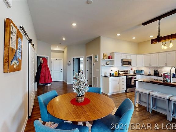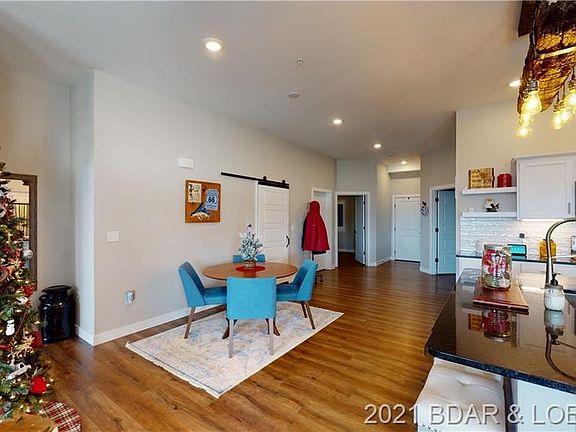 Happy Holidays will be had by all when you purchase this gorgeous modern farmhouse-style luxury condo in the heart of Osage Beach!You'll LOVE the amazing views of the State Park...which also means your view will never change (no homes or condos will ever be built there) & you can enjoy watching the not only all the boats in summer,but also the change of seasons from your huge covered deck. Small complex is 1 year old & offers an elevator to every floor,plenty of parking & a private pool shared by only 20 units.This unit has many upgrades(see attached feature sheet for full list)that you'll appreciate,such as an upgraded bar area w/duel temp bev fridge,custom island light,LVP flooring thruout(GREAT for lake life), & custom living room fan.Don't miss the awesome barn door to the pantry too! Location is the key here, whether for personal use or rental investment, everyone will love the close proximity to hot spots such as Dog Days, Backwater Jack's, Tirebiters, Woobly Boots, & more!