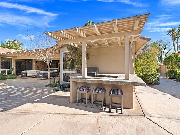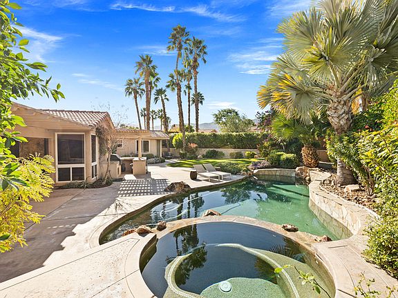 Available all Months! Located within the prestigious Rancho La Quinta Country Club, this exceptional home offers access to a state-of-the-art fitness center, community pools and spas, and a beautiful cantina for dining located at the main pool area. Set on a lushly landscaped 13,000 sq. ft. lot away from the golf course, the home welcomes you through a gated courtyard and custom double-door entry. Inside, the spacious floor plan features 4 bedrooms, a formal living room, elegant built-ins, surround sound, custom lighting, and a striking shadowbox faux copper fireplace. One bedroom includes office built-ins, while the dedicated office features French doors opening to a private side patio. The luxurious primary suite boasts a generous bathroom with marble countertops. The kitchen and bathrooms have been remodeled, and the home features custom paint throughout, along with a three-car garage. The resort-style backyard is ideal for entertaining, offering lush landscaping, a built-in barbecue, refrigerator, outdoor fireplace and bar, an expansive pool, sparkling spa, and a misting system for year-round comfort. A detached casita completes the property, featuring a living room, mini kitchen, beautiful bathroom, laundry area, and spacious bedroom with a queen bed perfect for guests or extended stays. Call us today to book your stay. Pricing varies by season please call for current rates. FYI: Owner is adding another queen bed to home. Office has a Pull out couch $5K & very comfortable. Price Vary call for pricing. Close to Coachella, Stagecoach & Indian Wells Tennis Gardens..