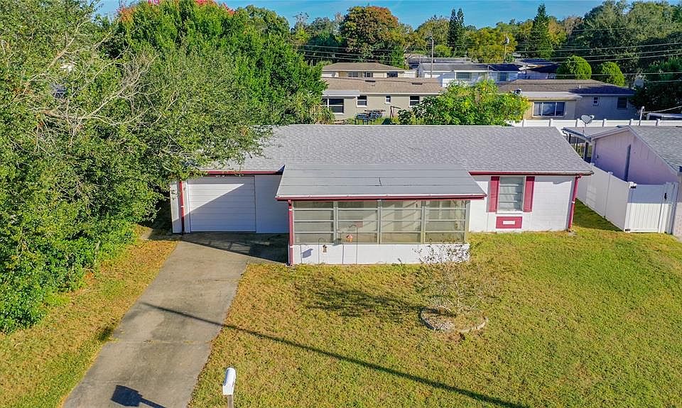 NEW WATERPROOF VINYL WOOD PLANK FLOORS, FRESH PAINT IN THE INTERIOR, ALL MAINTENANCE ITEMS LIKE ROOF, A/C, ELETRICAL PANEL HAVE BEEN DONE, NEW ELECTRICAL OUTLETS, NEW GFI'S IN KITCHEN, BATHROOM, AND LAUNDRY AREA, NEW OWNER GETS TO DO THE FUN STUFF, DECORATE! This property has been in the same family since it was built. Improvements made on the property are, central A/C & heat in 2015, electrical panel replaced and upgraded to 200 amp, & an upgraded meter in 2019, replaced septic system with lift station in 2019, roof replaced (30 yr. shingle) on 11/24/2019, replaced the water heater (30 Gallon) on 1/27/2020, replaced the stove top in 2019, newer Washer and Dryer 3/6/2020, new springs on garage door on 5/23/2022, 2023 new waterproof vinyl wood plank flooring, & interior paint. The property has Two Lanais / Florida rooms, 1 in the front of property and the other is in back, and also has a patio concrete pad for enjoying the Florida weather. A convenient location to everything like, shopping, restaurants entertainment, beaches, parks, medical, and airports. Location is close to Tarpon Springs, Clearwater, Palm Harbor, & New Port Richey. No HOA fees, & No flood insurance is required!