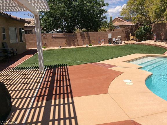 Welcome home to Mountain Falls This beautiful golf course community offers an array of recreational facilities, including two pools, a spa, an exercise room, and a clubhouse. Whether you're commuting from Las Vegas, which is approximately one hour away, or working locally, shopping is just 15 minutes away. This charming home features: 3 bedrooms, 2 full baths, Den/office - 3-car garage, Covered patio with extra large yard with pool and no maintenance landscaping, Inside, you'll find: - Tile flooring throughout, Granite countertops in the kitchen and baths. Walk-in closet, Separate shower, Garden tub. By appointment only!