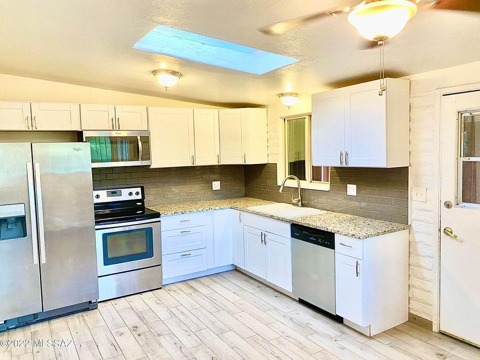 Clean and updated with new kitchen, new paint and new icy cold AC for the summer! Kitchen has granite countertops, pantry, and all updated appliances including stainless steel Whirlpool refrigerator, oven, and microwave, plus Frigidaire dishwasher. Solar bill is paid for by owner and covers most of the electric bill. Located on the 3rd Street Bike Path so convenient access to U of A. Shade trees cover the property and privacy abounds as this is a corner lot and next to Arcadia Wash, plus the huge backyard is perfect for kids or pets. The front yard has a big patio as well that is great for relaxing and there is enough parking for at least 5-6 cars. Tons of extra storage on site with four huge storage sheds/units. Pets ok with $250 nonrefundable deposit. Solar is paid which covers most of the electric bill. No smoking cigarettes inside.