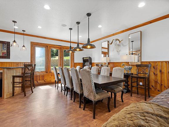 Listed by Suzanne White, 605-390-0137, Keller Williams Realty. Welcome to your dream estate. This stunning home sits perfectly to overlook Rapid City. The comfortable living room invites you in, while hardwood floors, beam details, and bright white interior evoke a warmth. The stone faced wood-burning fireplace is a showstopper. Entertaining is made easy in the gourmet kitchen, with gas fireplace, double oven, and butler pantry, all overlooking the impressive outdoor space. A large patio spans the side of the home, with several seating areas, basketball court, and dog run. Boat/RV storage next to the attached, heated 4 car garage with drain. The upper floor houses five bedrooms and three bathrooms, including the fantastic master suite. Featuring impeccable views, ample space, a private deck, and large en-suite with dual walk-in closets, dual vanities, tiled walk-in shower, and jetted tub, this suite is all you could ask for. All of the bedrooms have large windows to showcase the beautiful surroundings. Even the stairwells will take your breath away with feature windows. The basement offers great storage, media room, and wine cellar. New light fixtures, carpet, and fresh paint inside and out. There is ample storage space throughout the home. The spacious lot offers more opportunities to build out your dream estate with a large flat area to the east of the home. Other features include whole-house vacuum and Culligan water filtration system. Buyer/buyer agent to verify MLS info.