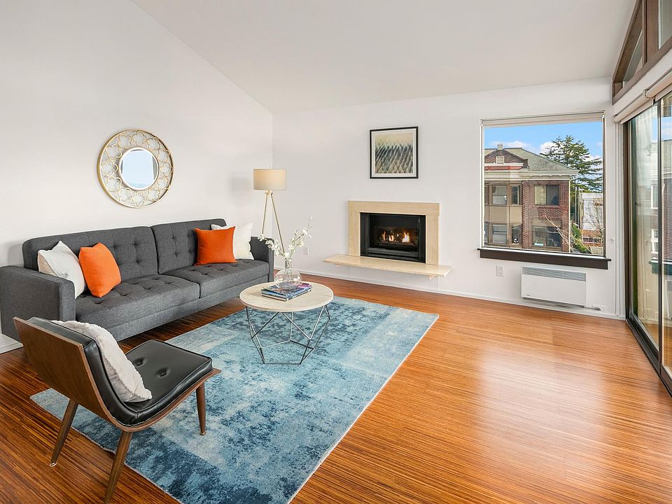 Enjoy views of downtown and the cascades from the balcony and living room with 15+ foot vaulted ceilings. Bright and airy penthouse unit located right across the street from Woodland Park and the Formal Rose Garden. With 2 secured off street parking spots, storage unit, and in unit Washer and Dryer, this condo boasts essential amenities. The kitchen opens to a dedicated dining space with bright windows bringing in natural light. One spacious bedroom and full bathroom round out the space, with plenty of storage and closet space in unit. Enjoy easy access to major transportation thoroughfares included I5 and Aurora Ave. The Interurban trail and Burke Gilman trail are easily accessible via bike. Fremont, Wallingford, and Phinney are all a short trip away. A short walk down Fremont Ave will take you to the core of the neighborhood a hip region with indie shops, eclectic bars, and trendy restaurants located on the north bank of the Lake Washington Ship Canal. The Fremont Sunday Market boasts unique art and antiques as well as local food trucks. Cyclists and walkers explore the canal-side Burke-Gilman Trail. 1. Rental Rate. $2,150 per month. 2. Utilities. Water, sewer, and garbage are included in the monthly rental rate. Electricity is resident responsibility. 3. Security Deposit. $1,950 (refundable). 4. Cleaning Fee. $200 (non-refundable). 5. Term. 12 month minimum. 6. No Pets.