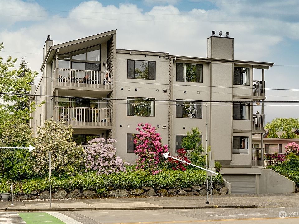 Wonderfully Expansive Corner Unit, Large Living Room and Dining areas that over look scenic S. Woodland Park & the Rose Garden!!! 2 bdrm/1.75 Ba with 1100 + sq ft., HOA has NO rental cap!!! This conveniently located and accessible unit has features that include: Primary Suite Bathroom, newly installed hot water tank & water shut off valve, new complex elevator & sec system (2021), secure parking. Plus an oversized storage (9'x3'-in garage area) for bikes or your holiday decorations!  Easy access to Bus, Hwy 99,  I-5, Fremont, UW, Greenlake, Ballard etc etc . Bike Score 88 Transit Score 55 Walk Score 88.