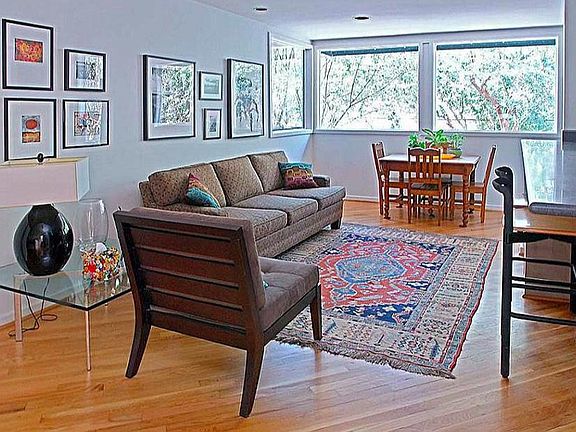 This exciting contemporary town home (2 bedroom, 2 1/2 bath) is a treat to see. Built in 1975 and a design award winner, it features open spaces with lots of light. The living and dining room are on 1st floor, kitchen, den and breakfast on second floor with open views. Two bedrooms, two bathrooms on 3rd floor. Wood floors, fireplace, double garage, patio. Great location, Graustark Street near Milford, in Museum area. One block from beautiful North and South Boulevards. Link below for photos from last time property was listed. New siding and updated interiors since then. Tenant pays for all utilities