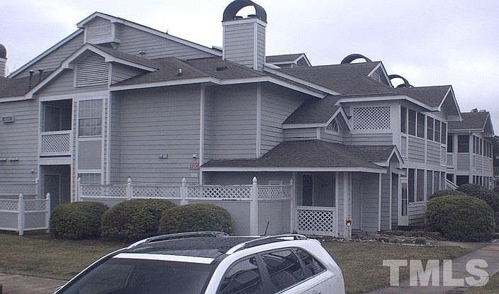 First floor end unit. Features 2BR/2BTH, New paint, New Carpet, ,Fire place, Screened porch, outside storage room, large. These condos rent well at around $800 per month. Great location, right off I-540, close to Triangle Town Center and the park.