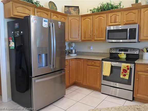 You will love the master bathroom with a jacuzzi, oversized water closet, his and hers closets, pocket door between the master bedroom & bathroom and a two- sink vanity. The kitchen boasts quartz countertops, lots of beautiful WOOD CABINETS, and a WINDOW SEAT with storage below in the breakfast nook. The kitchen also features a PANTRY with lots of shelving. APPLIANCES ARE STAINLESS STEAL. Both guest bedrooms have huge closets. The laundry room has CABINETS over the washer and dryer and a SINK right next to the washer/dryer. The lanai is enclosed, has tile floor, and 2 fans. Outside the lanai is a huge patio for the grill, and plenty of furniture. The chase lounge in the lanai and outside patio furniture can be included in the contract as the sellers are leaving that with the house. The 25x26 GARAGE is any guy's dream. It has a separate DOOR FOR GOLF CART ENTRANCE and still ROOM FOR TWO VEHICLES. The big garage door also has a SKEETER BEATER. The TWO work benches and lots of shelving are additional bonuses. Come take a look. You won't be disappointed.