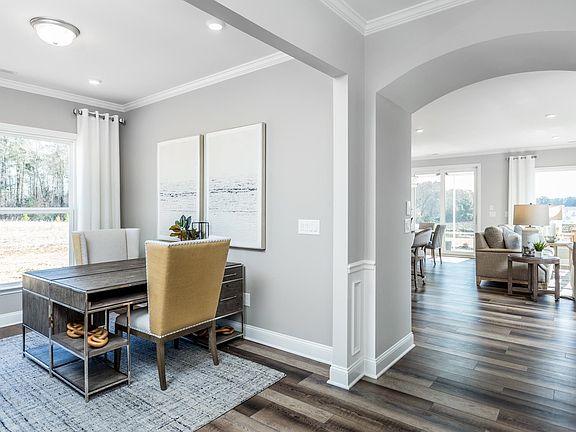 The Abbeyville's new home design features an open layout and integrated Gourmet Kitchen, Gathering Room and Cafe, Study and full loft with a bed and bath. You'll enjoy interior design selections as well as the convenient location to future 540, Raleigh and Fuquay-Varina! Only 5 minutes to Costco/Ten-Ten and 401!