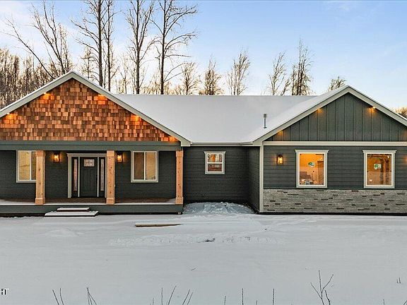 Upgrades Galore! Walnut window sills & custom walnut mantel, gas connection for your grill on the back porch, security wiring in the soffits, 800 sq ft garage, covered front & back porches, composite decking, 9' ceilings throughout with a vaulted ceiling in the main living area. Welcome home to this beautiful 5*+ ranch built by Gillespie Construction Inc. located off Farm Loop in the desirableGranite Ridge neighborhood. This 4 bedroom/2.5 bath house offers a popular split bedroom layout and boasts excellent storage throughout. The spacious master suite is thoughtfully crafted with a separate water closet, a soaking tub and a double walk-in shower. Beautiful cabinetry, gorgeous quartz countertops and walnut window sills make this a show-stopper! The gas fireplace with walnut mantel provides convenience, coziness and a charming aesthetic. The 800 sq ft garage gives ample space for a workshop area and all those Alaskan toys! This corner lot is nearly an acre and just a short drive to town, yet so close to many recreational settings such as Hatcher Pass, Skeetawk, & Goverment Peak Rec Area.