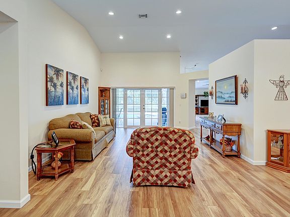 Beautiful 4 BR 2.5 bath pool home with full PGT hurricane impact windows, sliders, doors in highly desirable Brookside development. Vaulted ceilings, split floor plan offers great flow thru LR, DR, Kitchen, FR, all overlooking pool and lake. Updated kitchen, 42'' cabinets, island, Silestone countertops, two large pantries. Updated 2nd bath, white vanities, walk-in shower, cabana bath, updated half-bath. Two walk-in closets in owner's suite, large closets other rooms. Large laundry room. Oversized paver driveway (4 cars). Roof 2009, Carrier Infinity AC 2016, water heater 2016, LED recessed lights, ceiling fans, sprinklers from lake (pump 2022). East facing screened in pool with large patio offers shade/breezes off lake. Close to neighborhood parks, shopping, good schools.
