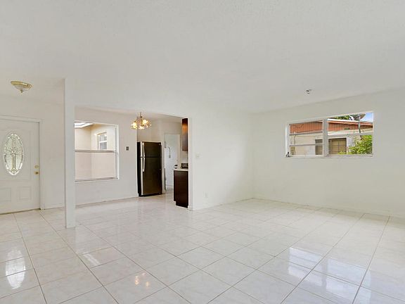 Concrete block home with new kitchen and 4 bedrooms. All tile floors, Large sliding glass doors, large backyard and plenty of parking.