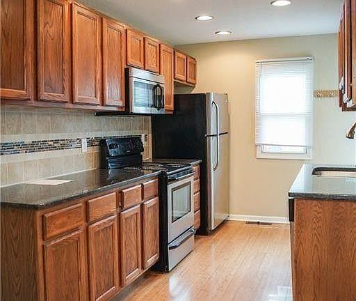 Great Location. So Bro Bungalow updated and ready for you to move right in! Updated kitchen and bathroom. Exposed brick in living/dining area. Bamboo flooring in kitchen, recessed lighting, granite counter tops and back splash. Spacious new patio in fenced in backyard. Full basement with plenty of storage/living space & a two car garage! All appliances included. 1 year min