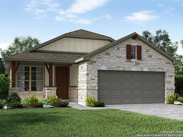 Brand NEW energy-efficient home ready August 2020! Generous bedrooms and a deluxe owner's suite with private bath accommodate the whole family. Espresso cabinets, white backsplash, soft gray tile, salt 'n pepper counters, greige carpet and gray oak vinyl in our Bold package. The San Saba is a open floor plan with a covered patio, stainless gas appliances, pre-plumb for gas grill, smart home system and spray foam insulation. No city taxes. Asher Place is located in the highly desirable, award-winning Shertz-Cibolo ISD and features a pool, clubhouse, parks and playgrounds, jogging trails and more.