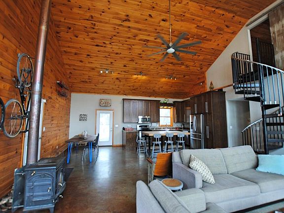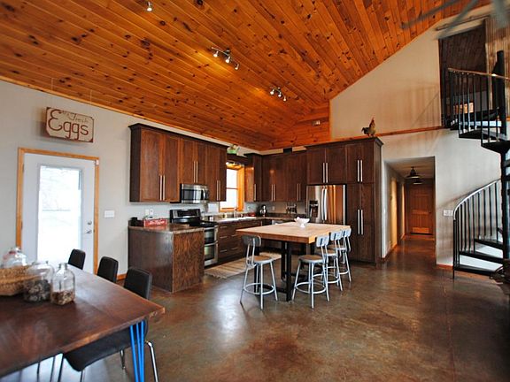 This contemporary home on 10 private acres is EXACTLY what you've been searching for! The passive solar design creates a wall of windows and soaring ceilings to highlight the living room, with a spiral staircase to the bonus family room and 4th bedroom up. Custom cabinets complement the newer stainless appliances in the kitchen, and you will fall in love with the hand-crafted butcher block island. Main level laundry and 4 spacious bedrooms ensure everyone has their own space, with the master showcasing a jetted tub, step in shower and his and her's closets. The woodstove in the living room provides a cozy setting to enjoy the convenience of being close to everything but the feeling of being miles from anything.