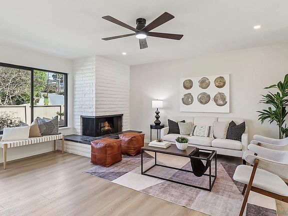 Perched on an elevated 8,500 sq ft corner lot in Bay Park, this fully renovated 4 Bedroom, 2 Bath, Mid-Century Modern home offers style, function, and unbeatable potential. Enjoy panoramic, unobstructed views of Tecolote Canyon, SeaWorld fireworks, and Point Loma! Ask about ADU Geeks Study for potential detached home on lower lot! The open-concept layout features a stunning chef’s kitchen with all-new stainless appliances: Samsung fridge, Forno Pro gas range, Cosmo built-in microwave drawer, and Samsung Whisper-Quiet dishwasher. Kitchen cabinets feature solid maple doors and frames, solid wood dovetail soft close drawers and are beautiful topped with quartz counters, deep stainless sink with Kraus faucet! Full height Spanish Flash Ivory ceramic tile backsplash, and dimmable recessed lighting. New energy-efficient Milgard windows, LED lighting, solid wood doors, luxury vinyl plank flooring, and a custom steel entry gate add comfort and security. The primary suite boasts a walk-in closet plus 12’ mirrored closet. Spacious walk-in pantry and laundry room offer ample storage. Thoughtfully crafted indoor-outdoor living, with nicely landscaped yard, large mature fruit-bearing orange and apricot trees, perfect for entertaining and kids play area. Bonus: The lot has room to add a fully separate 1,200 sq ft 3 bed/2 bath ADU with garage and private driveway via the adjacent street—ideal for multigenerational living or rental income. Minutes to the bay, beaches, dining, and freeway access! Enjoy a short walk to Tecolote Canyon's trails!Stylish Mid-Century Modern on Expansive Corner Lot Welcome to your dream retreat in Bay Park—this fully remodeled, turn-key residence is perched on an elevated 8,500 sq ft corner lot, offering panoramic views and space to grow. Whether you're soaking in sunset skies over Tecolote Canyon, catching SeaWorld’s summer fireworks, or envisioning your future second home on-site, this property delivers unmatched lifestyle potential. Inside, the home boasts a warm modern aesthetic with new LUX luxury 8mm/22 mil vinyl plank flooring throughout, energy-efficient LED lighting, and Milgard Style Line dual-pane windows with Low-E Argon gas for optimal comfort and efficiency. The heart of the home is a chef’s kitchen that’s as beautiful as it is functional—fully outfitted with all brand new stainless steel appliances including a Samsung mega-capacity 32 cu. ft. refrigerator with door ice & water, Forno professional gas range, Cosmo 24” built-in microwave drawer, and Samsung whisper-quiet Storm Wash dishwasher with a third rack. Custom cabinetry showcases 100% solid maple doors and face frames, dovetail drawers, and soft-close hardware, complemented by solid quartz countertops and a full-height Spanish Flash Ivory tile backsplash. Dedicated electrical circuits for every appliance ensure this kitchen was built to perform. A solid 16-gauge stainless steel sink with Kraus faucet, high-capacity lighted vent hood, and ¾ HP InSinkErator disposal with countertop vacuum button complete the space with thoughtful, high-end touches. Entertain with ease in the open-concept living and dining areas, warmed by a sleek fireplace and surrounded by dimmable lighting and clean contemporary finishes. Step outside to the covered patio and lush backyard, where you’ll find the ideal spot for gatherings—or simply relax and take in the unobstructable canyon-to-coast views all the way to Point Loma. The spacious primary suite features a 12-ft mirrored closet and additional walk-in, while bathrooms shine with modern tile work, designer lighting, and clean neutral tones. And here’s the real opportunity: the lot is zoned and laid out perfectly for a completely separate and private second residence—up to 1,200 sq ft, 3 bedrooms, 2 baths, with garage and private driveway access from the adjacent street. Ideal for multigenerational living, guest quarters, or income potential. Bonus Features: New solid wood El & El front door with Low-E glass All-new solid shaker interior doors & hardware Custom modern steel security gate at entry Spacious walk-in pantry & laundry room with built-ins New smoke & CO2 detectors throughout Located minutes to the bay, top schools, eateries, and freeway access This is more than just a home—it's a smart investment, a peaceful sanctuary, and a launchpad to everything San Diego has to offer.