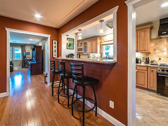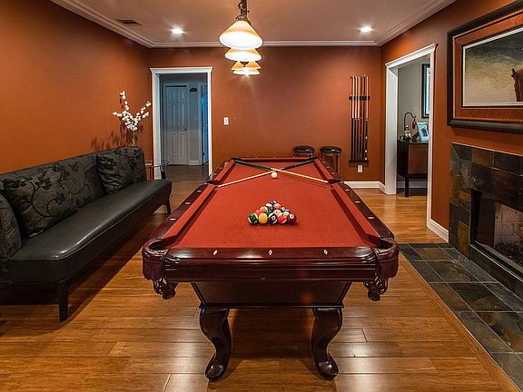 Welcome home! This 4/3.5 was completely renovated in 2008 and then upgraded again in 2016. The kitchen has everything from granite counter tops, a copper farm sink, Viking 6-burner stove with 2 ovens, a professional exhaust, oak cabinets & Italian limestone back splash. The entire home has crown molding & recessed lighting throughout along with real hardwood floors that have been refinished. One of the main features of the home is the double sided fireplace that separates the living spaces. All 4 bathrooms have been updated. The master bedroom is separate from the other bedrooms giving it privacy and the en-suite bath was exquisitely remodeled with a separate tub and shower. Private backyard is great for entertaining with covered patio and barbecue island, new energy saving pool hot tub, relaxing fountain & wall of morning glory. Garage has been converted to office and updated with all amenities. Solar panels keep the electricity bill very low. One solar panel is owned and one is leased for $40/mo. Home is private yet convenient!