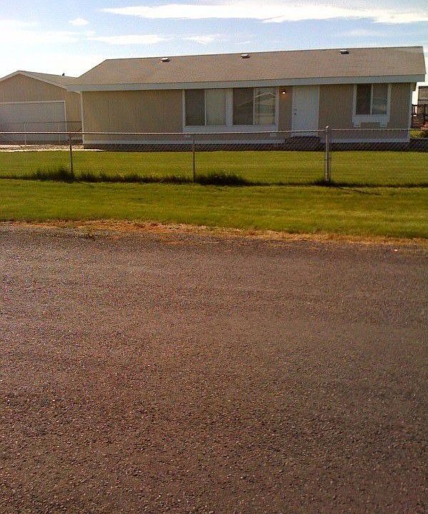 3 bedroom, 2 bath, 1,100 square foot manufactured home on 1 acre, fenced yard, gravel driveway, double detached garage.