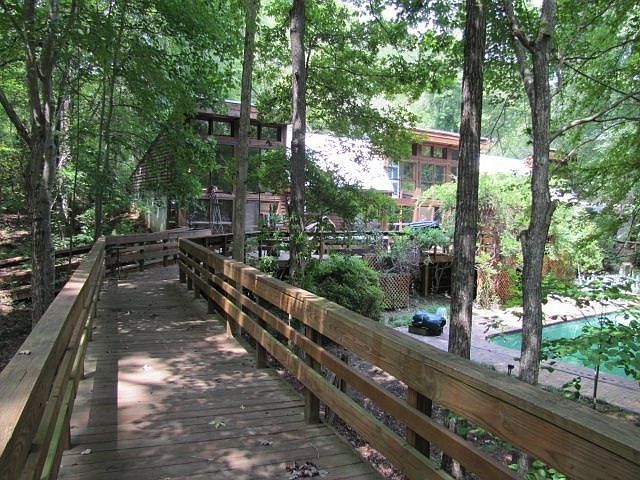 "This is a custom-built contemporary house with 17 wooded acres on New Hope Creek. There's nothing quite like this property on the market. It's an exceptional value." "A house in perfect harmony with it's environment." This home was designed by Ronald L. Mace, a nationally and internationally recognized architect, product designer and educator who established the Center for Universal Design through NC State's School of Design. SOLD DECEMBER 2, 2010 But if you are looking for something unique like this, please contact Tom Whisnant of Mill House Properties at 919-612-5296