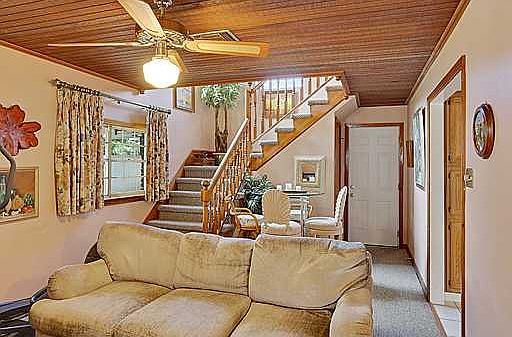 Fabulous home with great curb appeal in demand area walking distance to lake. 3 bdrms, possible 4th. Kitchen has gas stove, stainless appliances, ceramic tile floor. Bamboo wood floors, upstairs double paned thermal windows and energy efficient. Cozy den with cedar ceiling. Fenced yard with lovely landscaping, shed, carport, steel covered patio with hot tub seats 8. No Flooding. Must see!!