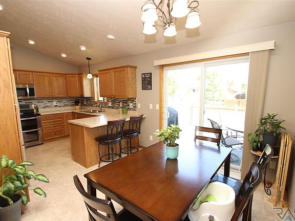 Fabulous Family Friendly home offers 3 bedrooms and 2 baths on one level; plus, it's located on a quiet street in south-eastern Sioux Falls with great convenience to schools, shopping, dining, entertainment, and parks. Beautiful Knotty Alder cabinetry, woodwork, and panel doors. Easy working kitchen with newer stainless steel appliances and snack bar. Comfortable eating area with glass doors to deck. Spacious backyard with a peaceful green-way between neighbors. Master bedroom suite has two closets and a private bath. Total of 4 bedrooms, 3 baths, and 2367 square feet. Gracious foyer with angled steps and entry from a 3 car garage. Lower level feels like main floor living with full garden windows; family room is huge and features a corner gas fireplace. 4th bedroom and 3rd full bath finish the lower. Plenty of extras in this home: newer shingles, air conditioner, and fresh exterior paint. Upstairs carpet to be replaced the first week of July.