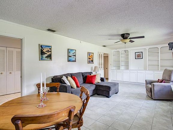 There's just something about this house that'll make you want to call it "home." Tucked away in desirable Dover Shores, stands this solid and absolutely adorable ranch style home. Freshly painted inside and out, this 3 bedroom, 2 bath home is light, bright and welcoming. You'll smile as you walk up the driveway and notice the nicely manicured landscape. That 60's vibe greets you when entering the front door. Nostalgic, yet oh so cool! Every area of this home is rather unique. The generously sized kitchen is toward the front of the home and has an abundance of cabinet space. Sliding glass doors lead you from the large dining area to a screened patio making it easy to entertain your guests inside or out. The family room is the perfect area for all your family and friends to gather and comes complete with custom built in shelves. The master retreat has a newly tiled and updated bathroom. All the bedrooms have plush carpet. Step outside and continue to fall in love. There's an additional storage shed amid a lush green and fully fenced lawn. Some of the updated features of this home include Energy Star Windows (2011), entire house water filter (2015), sprinkler pump (2016). But what you'll really dig is your super low air conditioner bill which averages just $40 a month! A high efficiency, 16.5 SEER A/C with multi stage compressor and variable speed air handler was installed just 3 years ago and you get to reap the reward. Don't miss out on this special, money saving home!