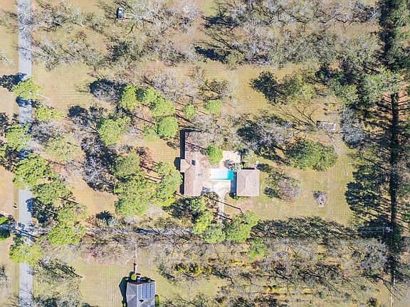 This unique property has something for everyone in the family to love! Featuring 4 spacious bedrooms, 3 full baths, plus a half bath conveniently located in the pool house/workshop area. The remodeled kitchen is beautiful—complete with beautiful lower cabinets, subway tile backsplash, floating shelving, granite countertops, a large island, stainless steel appliances, and a striking copper farmhouse sink. It opens to an enormous den showcasing exposed beams, a cozy fireplace, and floor-to-ceiling windows offering incredible views of the pool and over 4 acres of land! The formal living room is elegant and connects seamlessly to the dining room, which is large enough to host all of your family gatherings—there's even room for a comfortable sitting area. The primary suite easily accommodates a king-sized bed with plenty of extra space for additional furniture. The three additional bedrooms are all oversized and filled with natural light—every room in this home feels spacious and inviting! Step outside and enjoy your own private retreat—the perfect backyard oasis! Entertain by the HUGE pool, relax under the trees, or let your imagination run wild. The property is enhanced by multiple fruit trees. With so many features and so much space, this property truly offers it all—a peaceful, private setting with room to grow, create, and enjoy life to the fullest!
