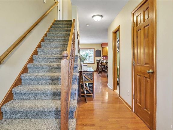 Welcome to this stunning home nestled perfectly between Mt. Vernon and Evansville. As you step into the spacious foyer, you'll be greeted by elegant wood flooring that extends into the living areas. The living room, featuring a cozy gas-log fireplace, flows seamlessly into the dining room. The dining room, with its French doors, opens onto a newly built, large deck that is just one year old. This deck overlooks the backyard and the inviting 20x40 heated in-ground pool, complete with an automatic cover, slide, and a diving board. The pool features a 2-year-old liner and an updated cover 4 years ago. This outdoor space is perfect for entertaining or simply relaxing in your private oasis. The extra-large kitchen is a chef's dream, boasting a generous breakfast bar, an island, a planning desk, a pantry, and ample cabinet and counter space. Adjacent to the kitchen, you'll find a versatile room currently used as a den, which could easily serve as a formal sitting area or a home office, along with a conveniently located guest bathroom. Upstairs, the spacious master suite features a full bath and a large walk-in closet. Two additional bedrooms share a well-appointed hall bath. The upper level also includes a large bonus room that can serve as a fourth bedroom, complete with a spacious walk-in closet, and a laundry/utility room equipped with a utility sink. The finished walk-out basement offers even more living space that can be tailored to your liking and currently features plenty of storage and another utility sink. Many updates throughout, including updated flooring and paint in upstairs bathrooms and a 5 year old roof!
