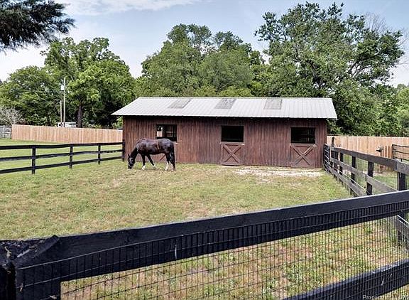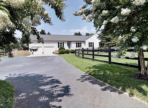 As you pull into the tranquil paved driveway lined with beautiful crepe myrtle trees & beautiful lush pastures on either side a sense of peace descends upon you! A horse lovers delight (zoned A-1) with a 3 stall stable with a tack room & equipment/hay storage space. The pastures are lush & well fenced with an additional solar powered hot wire for safety . The home is light & bright with an easy living floor plan that has 4 bedrooms, an updated eat in kitchen with granite counters, gas fireplace in the family room, fabulous covered deck for entertaining & a wonderful salt water swimming pool. The pool area is fenced & has a pool house for equipment storage & a half bath. Great storage with a pull down attic! A fabulous retreat yet it is so close to I-64 for the busy part of your life: 40 minutes to downtown Richmond & 15 minutes to Colonial Williamsburg.