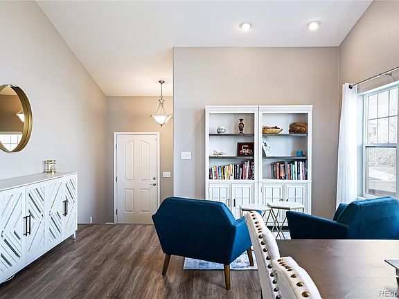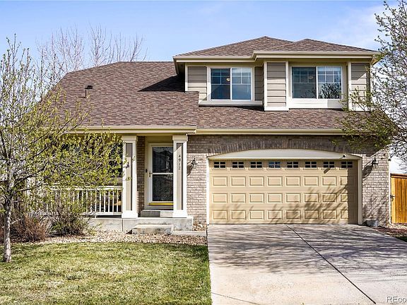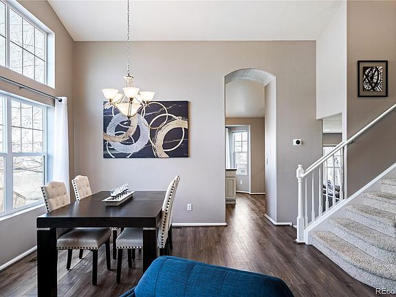 Sheer luminosity abounds in this inviting Tollgate Crossing home. Situated on a quiet cul-de-sac, an expansive .22-acre lot sprawls w/ picturesque landscaping. Located in the coveted Cherry Creek School District and a short ~20 minute drive to DIA. A covered front porch welcomes residents inward to a gracefully flowing layout. Abundant natural light pours in through large windows as vaulted ceilings expand the scale of the space further. A bright kitchen offers the perfect workspace for the home chef w/ stainless steel appliances, all-white cabinetry and a large center island w/ drawers and seating. Enjoy outdoor gatherings on the deck and flagstone patio in a private backyard neighboring a vast greenbelt. Enjoy relaxing and entertaining in a spacious living room anchored by a gas fireplace. A laundry room is an added convenience. Retreat to a primary bedroom featuring wide windows and an en-suite bathroom. Two sizable secondary bedrooms share an additional full bathroom. The basement offers a conforming fourth bedroom that provides a variety of options including bedroom, office, gym, theater or storage space. Upgrades include updated light fixtures, radon mitigation system, new roof 2022 and new water heater replaced 5/2023.