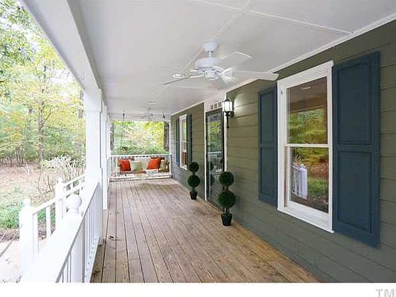 Stylish charm set on quiet wooded lot. Semi wrap around porch w/swing. Fireplace in living room. Separate dining room. Kitchen is bright, spacious & very inviting. Breakfast area has great view of large wooded lot. Large screened back porch has skylights. 3 large bedrooms for all your growing needs. New ceiling fans, fresh paint throughout + new flooring. Move in ready! A must see!