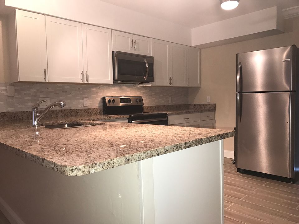 2 bedroom 2 bath FULLY renovated, first floor, end unit available for Annual rental Available NOW! Centrally located walking distance to grocery stores, pharmacy, restaurants and businesses. This condo is located only 2 miles away from Cape Coral's Yacht club and beach. New plank tile, new paint, new AC unit, new baseboards. Both full bathrooms feature new vanities, sinks and faucets.The kitchen features beautiful, modern white cabinets, all new matching stainless steel appliances and granite counter tops, and washer and dryer. Sorry no pets. Call today to schedule your showing. First, Last and Security required for move in. No criminal history or previous evictions.