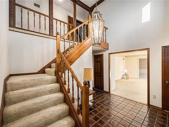 This exquisite 1.5-story home, nestled in a mature tree-lined subdivision, features a 2-car garage and a main-level primary bedroom. The main floor boasts a grand entry, vaulted living room with a fireplace and mini-bar, a spacious kitchen with a breakfast nook, and a dining room. The second level includes a second en suite bedroom, two additional bedrooms with a shared Jack and Jill bathroom, and attic access for potential expansion. The basement is an entertainer's delight with a full bar, open space, and a 5th non-conforming bedroom. Crown molding, solid wood doors, and cabinets add elegance throughout. Conveniently located near amenities, this home is ready for modern updates.