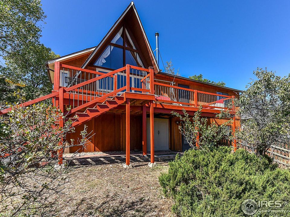Unique vintage A-Frame, one of the originals. Owner has lived there over 40 yrs. and added on 2 levels, a shop, trees,& bushes. Much of the addition is built with 2 x 6's. Stunning views of Horsetooth Reservoir from front deck. Walkout lower level shop/flex room offers opportunities for creative projects or game space. Larger bedrooms, remodeled main bath, 2 story windows with amazing views. Upstairs loft with pull down ladder. Opportunity for buyer to make this even more special.