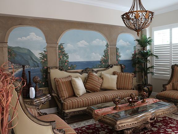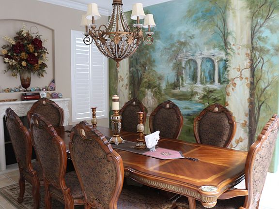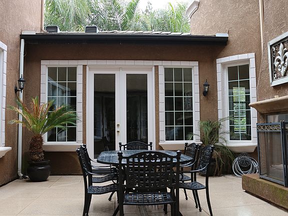 Awesome and Spacious Leo Wilson custom home, nestled in a highly desired NW neighborhood. Upon arrival into the Foyer you'll be swept into an abundance of elegance. The formal dining room w/a one of a kind marble mantle and hand painted wall. This home boasts a cemented interior courtyard to enjoy romantic nights in front of the outdoor fireplace. Enjoy the summer too w/sparkling pool in the comfortable and easily managed back yard. Beautiful chandeliers with medallions, crown molding, French doors, birch cabinetry and expansive mural painting in the formal living room , surround sound are just a few of the many extravagances. Of the 5 beds one is isolated downstairs with its own full bath. This home has 3 1/2 baths, office, formal living room and dining room, gym room, gourmet kitchen w/ 2 sinks, granite counters, butler's pantry and breakfast bar. Upstairs; an additional office and/or game/tech area. Outdoor security camera surveillance, make this home a safe haven.