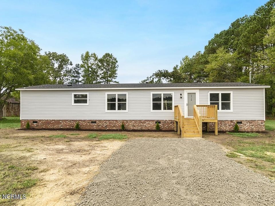 Remodeled double-wide on an acre in the county. Large Great Room with fireplace with gas line(Fire in pictures is virtual). Kitchen with big Dining Area, brand new Stainless Steel Appliances, and Walk-in Pantry. Master Suite with Walk-in Closet, soaking tub, and separate shower. 1 more Guest Rooms along with another Full Bath plus Bonus Room.  Fresh paint throughout, new flooring throughout, new light fixtures.