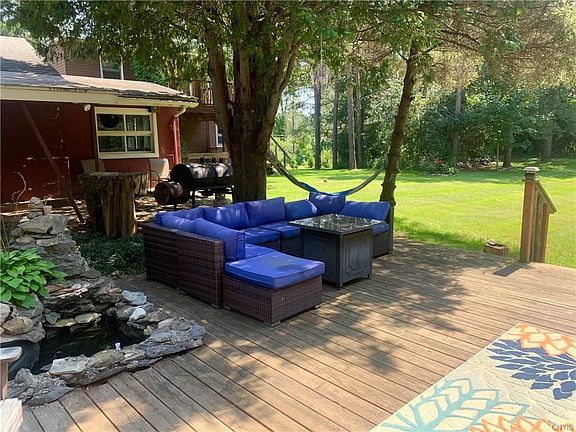 Marcellus charmer on almost 3 acres. Your own private retreat. Rustic interior with many modern updates. The first floor features an open kitchen with cathedral ceiling, dining room and family room as well as 3 bedrooms and 1.5 baths. The second floor suite walks out to a private deck with serene views. This home is perfect for those who love the outdoors and hosting friends and family. The sprawling property has expansive yards, gardens, fruit trees, maple trees, grapevines, raspberry bushes, koi ponds and wooded trails. All this while still being less than 10 minutes from shopping, entertainment and highways to take you anywhere you need to go.