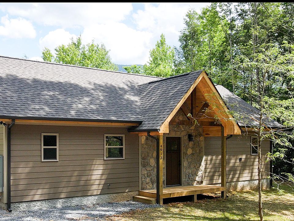 New construction home with two bedrooms and two full baths located in picturesque Cosby just across US Highway 321 from the Great Smoky Mountains National Park. Exterior features consist of genuine cedar shakes and Hardie concrete siding coordinated to feature the mountain setting with hemlock trees and rhododendron on property. The home is soundly constructed on a concrete slab with a concrete covered porch in back. Privately located, it has outstanding winter views of the Great Smoky Mountains. Inside, the home boasts tongue and groove wood walls and ceilings, solid wood doors, granite countertops, stainless steel appliances, tile and LVP flooring, an electric fireplace, and a vaulted ceiling in the living room. This home includes a one year warranty. Conveniently located less than one mile from US Highway 321 with no steep mountain roads, this home would be excellent as a residence or overnight rental. Drone used for some photos.