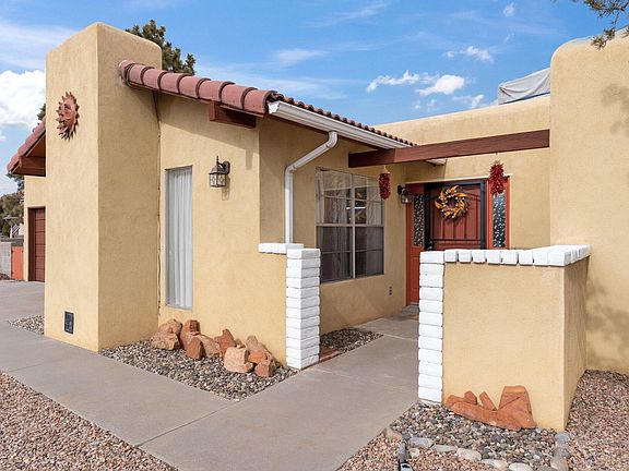 Who's ready for a beautiful remodeled, Pinterest worthy home in one of the best locations Rio Rancho has to offer? All kitchen appliances are less than 2 years old. The unique finishes like the geometric backsplash and the cedar wall give such a good feeling to this home. The oversized 2 car garage is configured in such a way you could easily build a workshop, craft area, almost anything. The fully landscaped front yard leaves only the backyard to be finished. A half acre with enough backyard area for all of your designs and desires. You will be treated to endless amounts of hot air balloons flying overhead. Thompson Trail/Roadrunner park, 2 blocks away. The peaceful neighborhood shows a tremendous amount of holiday spirit!
