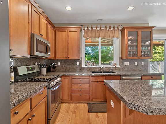 • Appliances: Dishwasher, Built-in Microwave, Garbage Disposal, Stainless Steel Appliance(s), Free-Standing Range, Free-Standing Refrigerator, Island, Tile, Granite