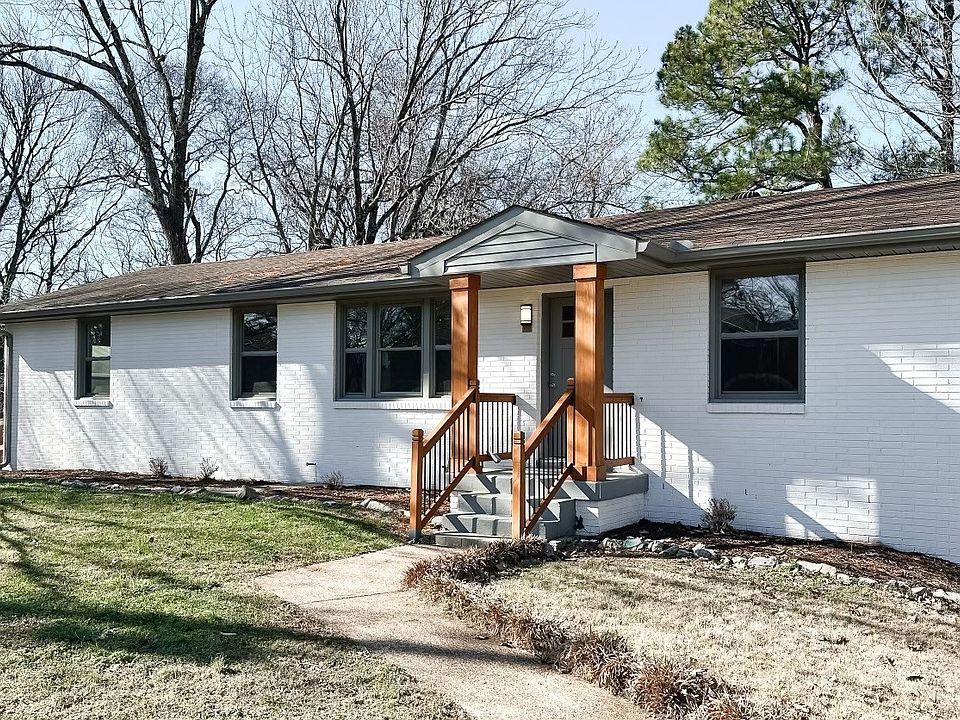 Fantastic renovated home in a great neighborhood! Over an acre yard. Brand new HVAC system with separate units! Large, covered back porch for relaxing. Completely renovated kitchen with shaker cabinets, quartz countertops and outside vented microwave. All new interior/exterior doors. Gorgeous new garage door. Upstairs features original, refinished hardwood floors and luxury vinyl plank flooring in the kitchen, eating area and open den. Enormous living room! Three bedrooms on main. Walkout basement underwent a complete modernization! Can be used as an impressively large primary suite with beautiful tiled bathroom and a massive walk-in closet; could function as rental space; can be a fantastic flex space with lots of living area! Tons of storage space. Home warranty provided by seller.