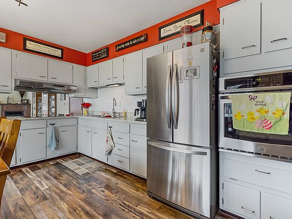 This brick ranch home is situated on 8 acres of land and is full of updates. The home features 3 bedrooms and 1.1 baths, a finished basement, and a huge kitchen with painted cabinets, updated backsplash, and countertops. The property also includes a barn with stalls, two sheds & some fencing. New windows and doors thru-out the home. The Family room features a gas log fireplace. Awesome stamped concrete patio overlooks this beautiful property. The newer furnace, water heater, and new roof on the house and barn and new siding on the barn are some of the recent updates. The home is on natural gas. City water!! This is a great opportunity to own a beautiful home in a peaceful setting.
