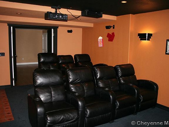 Large ranch-style home with 5 bedrooms and 3 baths, open floor plan with vaulted ceilings, 3-car garage, central air, and a large theater room with all the components included.