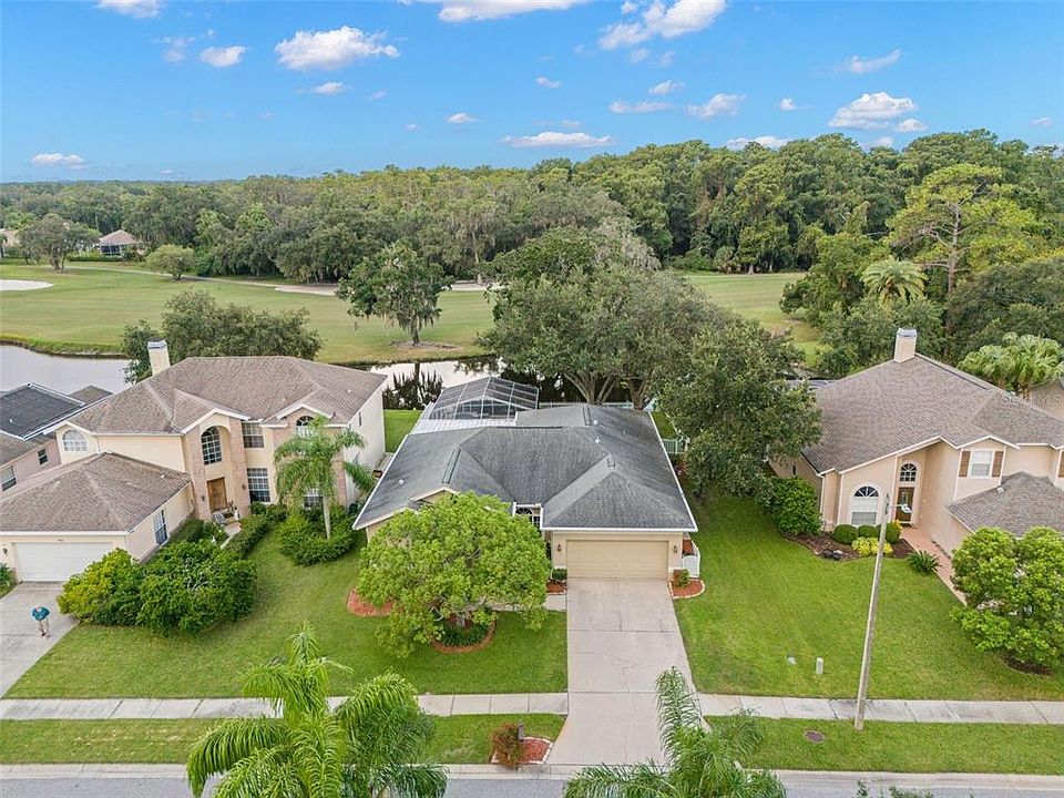 Come and see this beautiful split floor plan 3 bed/2 bath/2 car garage pool home in the lovely Worthington neighborhood within the gated East Lake Woodlands community. As you arrive at the property, you will appreciate the lush shrubbery at the front of the home. As you step inside the front door you will be in your open living and dining room. These formal spaces will be perfect for entertaining and there is a beautiful window that overlooks your pool, lanai, pond and golf course beyond. Off the entry to your left is your primary suite, which has private sliding door access to your lanai with beautiful plantation shutters. This space is large and boasts a walk-in and wall closet off the hallway to your private en suite, both closets have built ins; bathroom has an oversized step-in shower with built-in bench, dual sink vanities separated by an oversized large vanity closet with full length mirror, a linen closet and a private water closet. Step back out into your main living area where your kitchen is open to your light and bright family room, which has pocket sliding doors to your lanai. There is a breakfast nook space with a hanging light, plus there is a breakfast bar area at the kitchen island. The kitchen has beautiful quartz countertops, stainless steel appliances and medium color cabinetry with plenty of storage space. Off the kitchen is the laundry room, which has extra cabinets for storage and offers you access to your garage. The family room is nice and large and has beautiful views of the golf course and backyard. Your secondary bedrooms are located off the family room. The first bedroom has built-ins that includes a great murphy bed and office niche. Additionally, there is a good size wall closet. The third bedroom has another wall closet and enjoys a beautiful view of the backyard and golf course beyond. The shared bathroom has a vanity with storage and a tub/shower combination and brand new toilet. Out on the brick paved lanai you have plenty of space for both an outdoor living and dining room if you choose. The pool and spa are simply stunning and the pond views add to the serenity of your backyard oasis, which offers a beautiful space for outdoor activities as well. There is white PVC fencing around the yard, too. This home is located within the sought after gated golf community of East Lake Woodlands. Do not wait to come and see this home. Make it yours today!