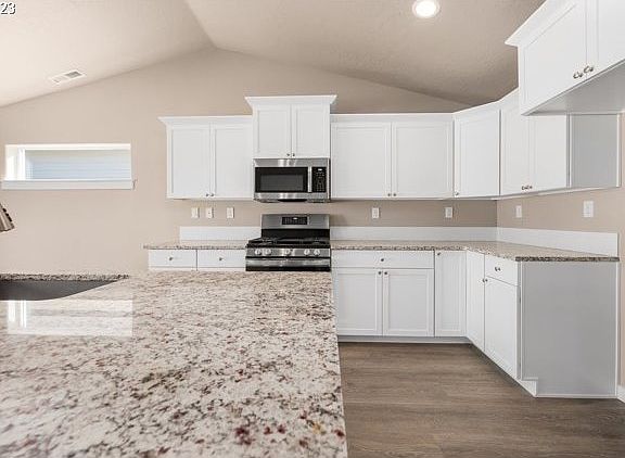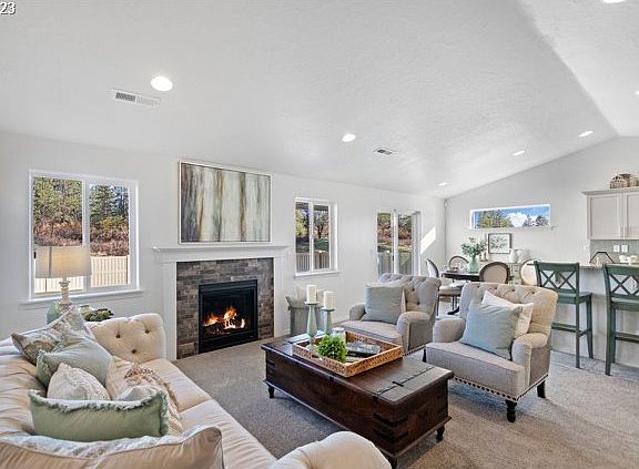 Make Your Move Savings Event Happening Now! Get up to $15k* to use on extras like closing costs, interest rate buydown and options. Woodland Ridge located in the Thurston area. The Edgewood plan offers Spacious kitchen with ample counter space, quartz counters, island, and GE stainless steel appliances, including a gas stove and under-cabinet lighting. Vaulted ceiling in the living room. Master suite separate from front bedrooms, featuring a vaulted ceiling and two walk-in closets. Attached bathroom with dual vanity sinks and shower. Includes A/C, a third car garage, gas fireplace, window sills throughout, fully fenced and a 1-year home warranty. Beautiful mountain views, close proximity to grocery store, freeway access, and schools. *Promotion subject to change or end without notice. Pictures are of like homes. Construction completion mid spring