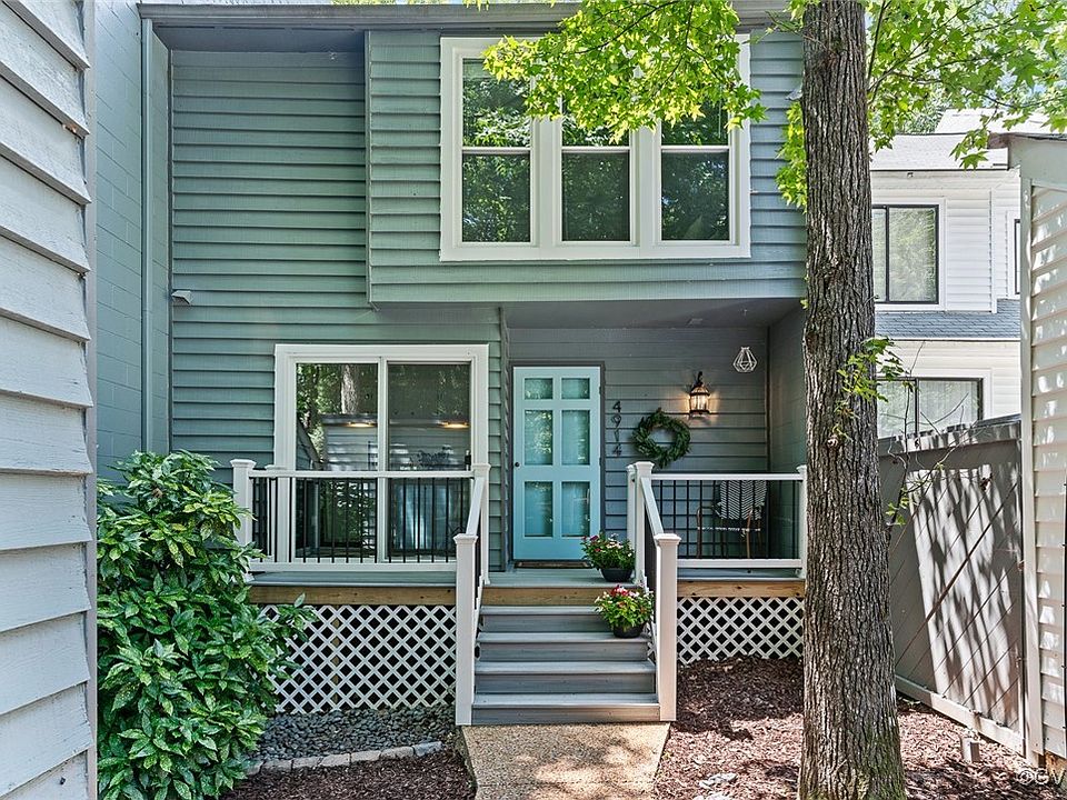 Waterfront Townhome in Brandermill! Welcome to this beautifully updated waterfront townhome overlooking the Swift Creek Reservoir in the desirable golf community of Brandermill! Step onto the low-maintenance front porch featuring composite decking and PVC railings—perfect for easy upkeep. As you enter the home, you're immediately greeted with stunning water views that span the entire main level. The bright kitchen includes tile flooring, freshly painted cabinetry, a **brand-new oven**, and a charming under-cabinet view into the breakfast area.