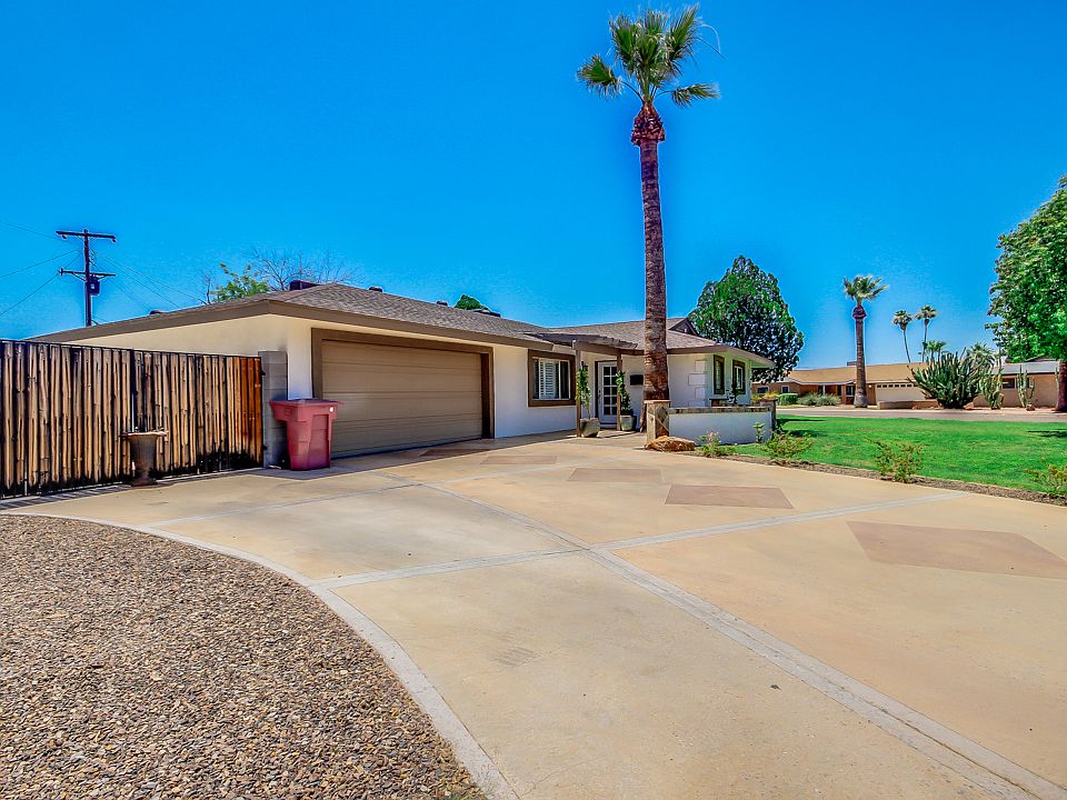 Recent appraisal for $381,000. Connected workshop with backyard access. Updated 4 bed, 2 bath property in an amazing location in Scottsdale! 2 minutes to Chaparral Park/ Dog park, 5 minutes to Old Town ,Fashion Square,Quick access to 101. Large lot with mature trees and beautiful landscape, a charming interior with wood and stained concrete floors, plantation shutters, and fabulous kitchen boasting plenty of premium cabinets with crown molding, large island, pendant lighting, wine cooler, wall ovens, built-in microwave, tile backsplash, and large eat-in area. The master has tile surround shower and glass block window. Roof completely replaced with new osb board and HD GAF shingles as well as 15 Seer Trane AC unit in April 2014. Entertainers backyard extended covered patio, multiple se