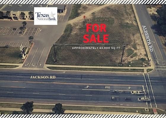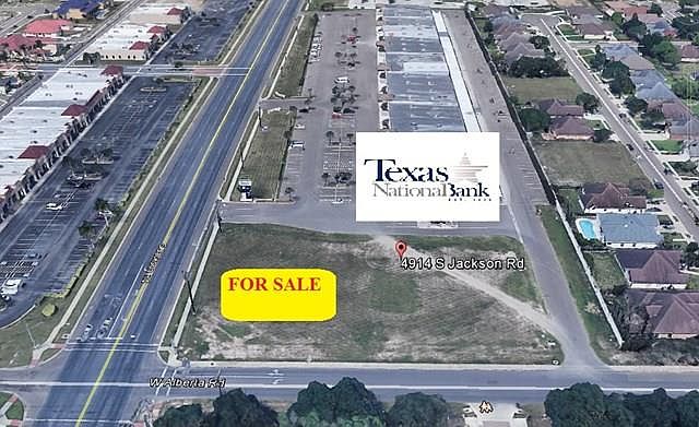 Over an acre of a Prime Commercial Corner located just SOUTH of Texas National Bank at the North East corner intersection of S Jackson Rd and Alberta. A perfect location to build a business ready to succeed at a busy and prominent commercial location. The subject property is located next to Texas National Bank's drive-thru and parking lot. Priced per sq ft and will be adjusted accordingly to a survey. Pharmacy located at the NWC of this same intersection.For information please contact Richard A Garza at 638 6295 or licnenced realtor assistant Carminia Martinez at 640. 5956